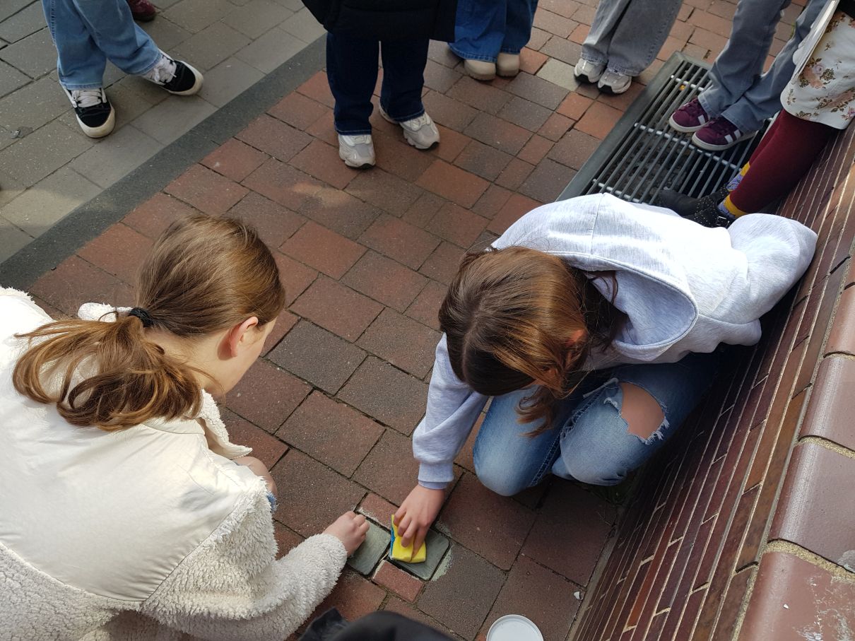 Die sogenannten Stolpersteine sind kleine, in den Bürgersteig eingelassene Gedenktafeln, die der Künstler Günter Demnig seit 1992 in Deutschland und weiteren Orten in Europa verlegt. Sie machen mittlerweile mehr als 100.00 Stück aus und gelten als das größte dezentrale Mahnmal der Welt. Da sie aus einer Messinglegierung bestehen, laufen sie durch die Witterung dunkel an und müssen geputzt werden, damit sie wieder auffallen und an die Menschen erinnern, deren Namen darauf festgehalten sind.