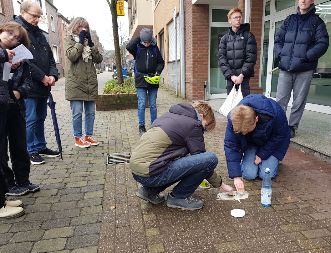 Vier Tage vor dem Holocaust-Gedenktag, der an die Befreiung des KZ Auschwitz durch die Rote Armee vor 80 Jahren erinnert, machten sich zwei Religionskurse 10 auf, um einen Teil der Anrather ‚Stolpersteine‘ wieder glänzend zu machen. Außerdem wurden kurze Texte verlesen, meist mit den Namen und biographischen Daten, die noch von diesen Anrather Mitbürgern auffindbar sind. Die Stolpersteine gehören zu dem einzigartigen Kunstprojekt, das der Künstler Günter Demnig 2006 ins Leben rief und zu dem mittlerweile über 100.000 Stolpersteine in ganz Europa zählen. Es gilt als das größte dezentrale Mahnmal weltweit.